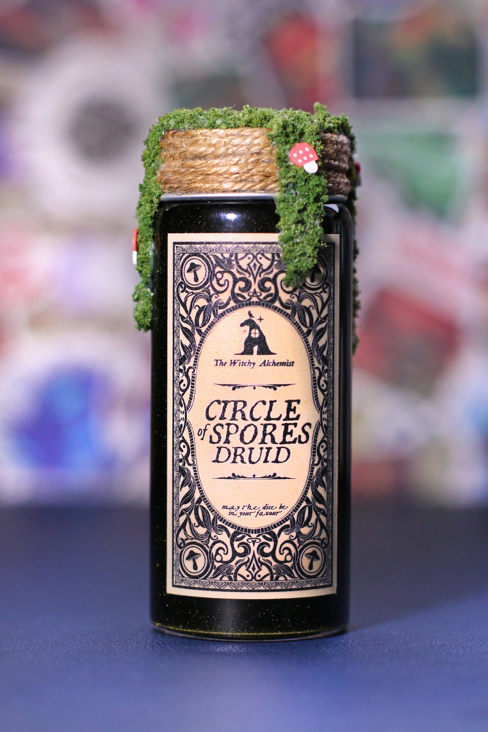 Crafted specially for the fun guys (you know what we mean!!!), these colour-shifting potions of deep forest green and gold are perfect for every Circle of Spores Druid! Each potion also comes with tiny red mushroom spores and druidcrafted lichen and moss that adorn the top and sides of the vial.
