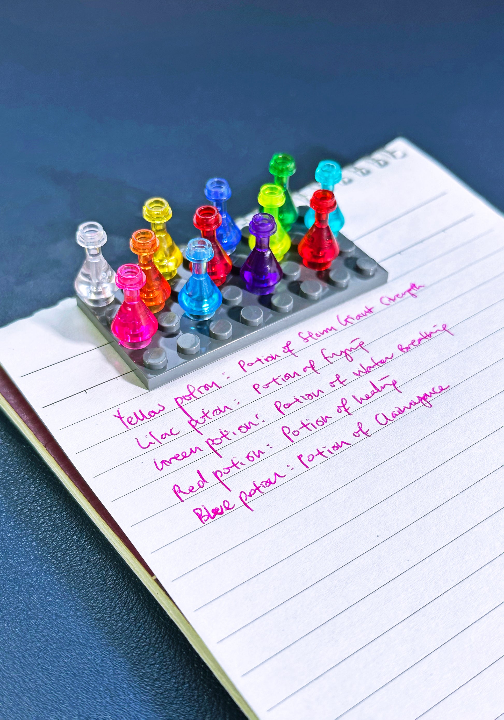 With your own custom Magic Potions Rack, you can come up with a legend (as shown in our photos) by assigning a coloured potion bottle to your potion 💜