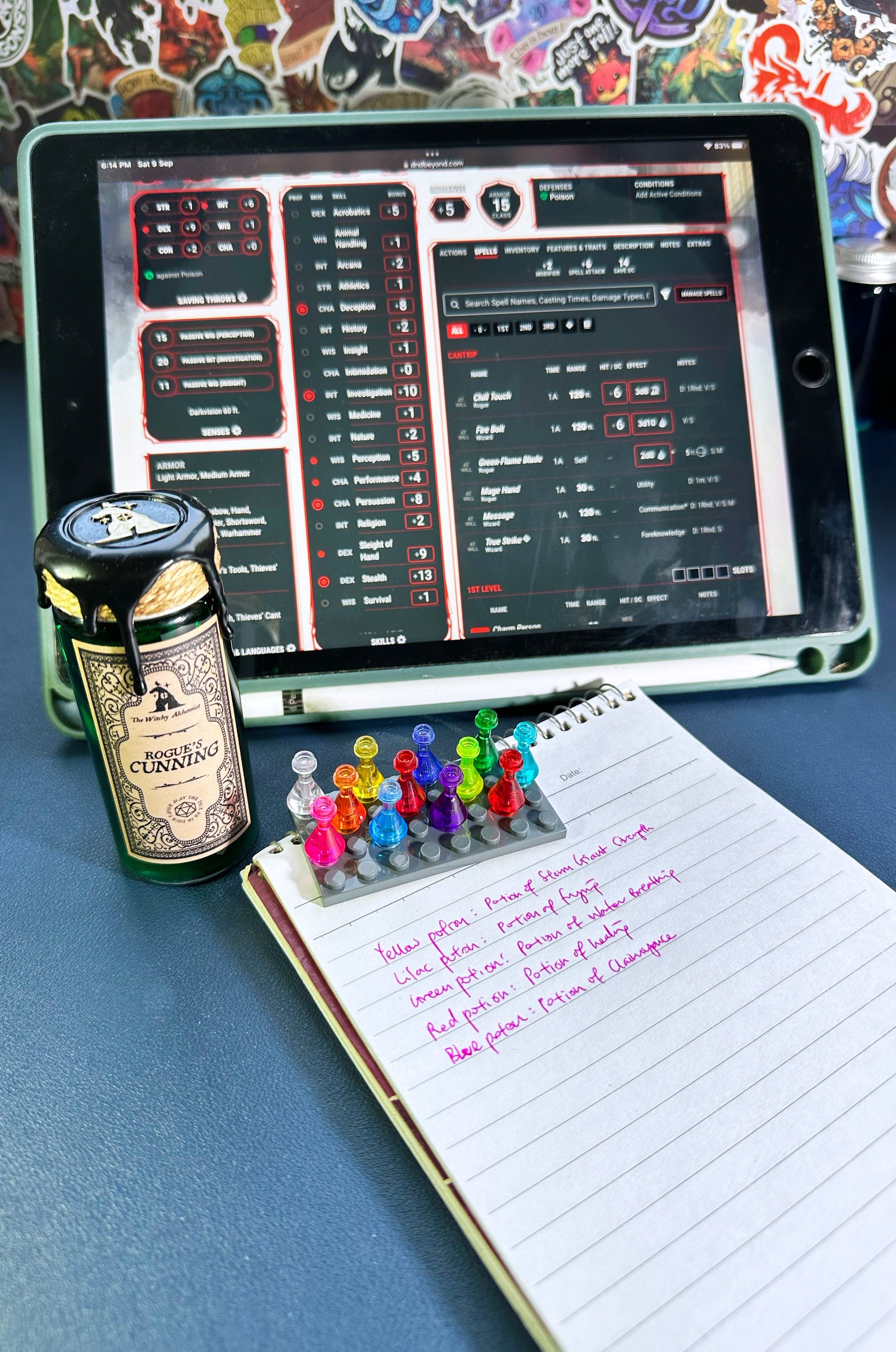 Whether you play an alchemist or a hoarder who collects potions (and never uses them because... you forget to *SOBS*), this potion rack - of fully CUSTOMIZABLE COLOURS - is the perfect physical reminder!